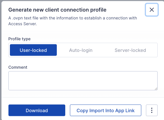 Aneu a User/user/Connection Profiles i creeu un perfil de connexió per defecte. Un cop creat us baixarà un fitxer de configuració que després utilitzarem per connectar-nos al servidor VPN.