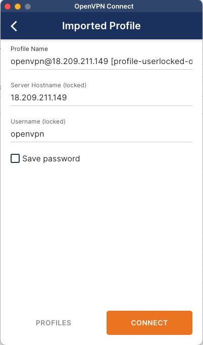 Importeu el fitxer de configuració del client OpenVPN Connect a l’aplicació i connecteu-vos al servidor VPN.