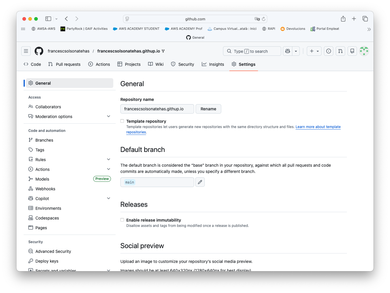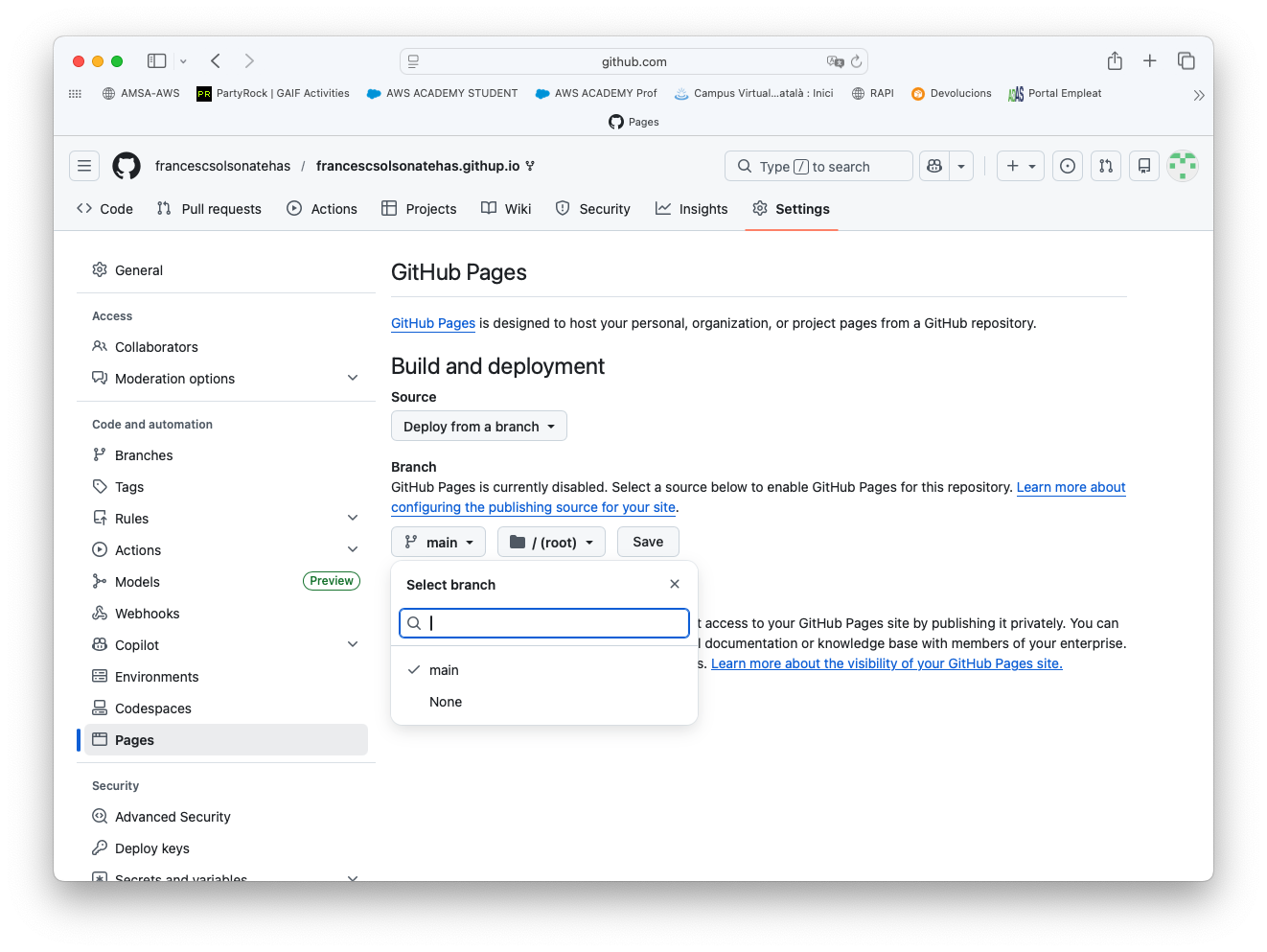 mainbranch as the source. Click on the "Save" button and go back to your repository main page.